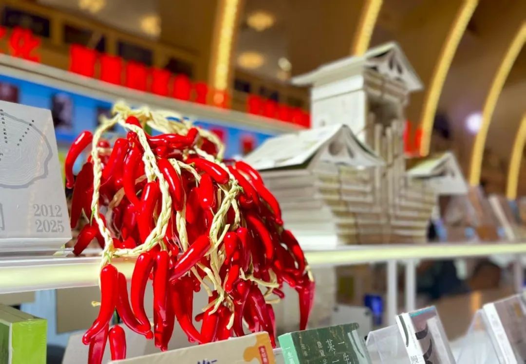 火辣鲜亮的辣椒造型贯穿展台各个功能区,既是对湖南地域特色的直观表达,亦暗喻出版事业的蓬勃生机。设计师通过红色亚克力材质与灯光组合,将辣椒转化为动态艺术装置,与图书展陈相映成趣,巧妙呼应“湖南人能吃辣椒会出书”的宣传主题,传递出湖南出版人锐意创新的精神风貌。