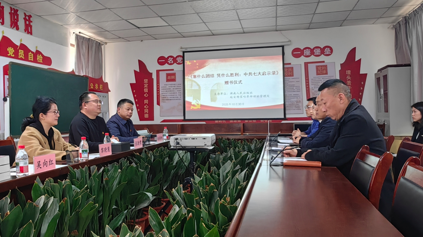 近日,湖南人民出版社分别向延安革命纪念馆与杨家岭革命旧址管理处捐赠《靠什么团结 凭什么胜利:中共七大启示录》一书,以此助力广大游客、读者深入了解延安革命历史、传承延安精神。