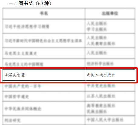3月27日,第六届中国出版政府奖获奖名单正式公布。湖南人民出版社荣获两项大奖,其中,《毛泽东文谭》获图书奖,编审周熠获优秀出版人物奖。